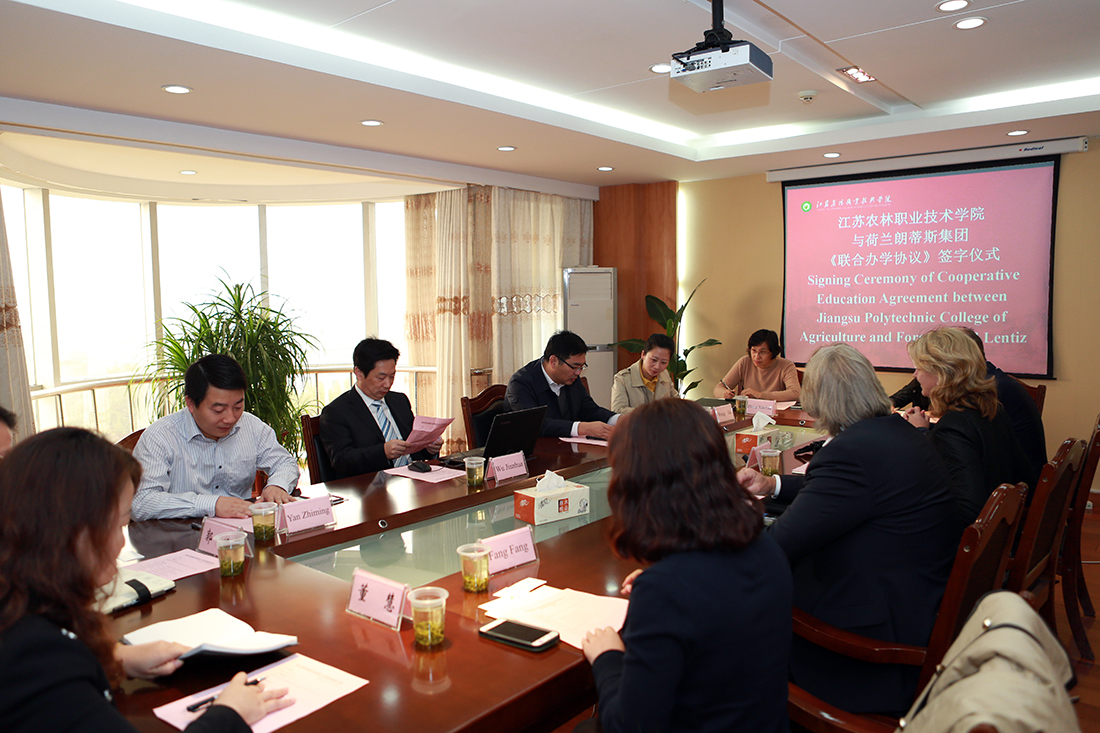 11月4日,荷兰职业教育代表团一行4人访问永利官网,并与永利官网签署了联合办学协议。荷兰诺德温学院国际合作项目主管海玲•安德林加(Heleen Andringa)女士,荷兰朗蒂斯(Lentiz)集团国际交流负责人弗里茨•范康普(Frits Veltkamp)先生,Aeres Groep学院代表里克•米勒玛(Rik Meerema),永利官网院长巫建华,副院长曹仁勇及相关部门负责同志参加了签约仪式。 巫建华院长对荷兰职教集团的到来表示热烈欢迎,并简单介绍了永利官网的基本情况。他希望通过此次合作,既能够使双方的师生受益,还能带动周边区域农场主的发展和培养。海玲•安德林加女士就荷兰诺德温学院的办学特色和教学理念进行了详细的介绍,希望双方能够建立长远的合作关系,在更广的领域开展合作。里茨•范康普先生对合作项目进行了介绍,并代表荷兰Lentiz教育集团与永利官网签署了联合办学协议,共同开展BTEC课程联合办学项目。