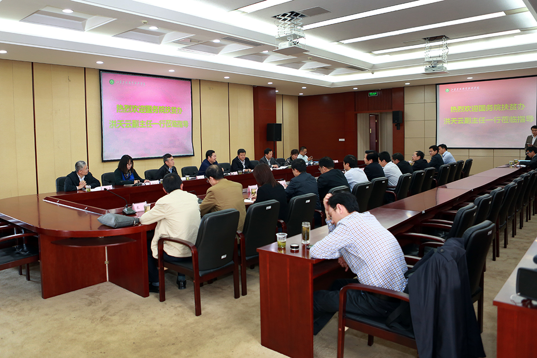 10月27日下午,国务院扶贫办党组成员、副主任洪天云一行5人在省委农工办主任赵旻、镇江市委副书记李茂川、句容市市长许文、市委副书记商震的陪同下来永利官网调研,并在综合楼九楼会议室召开了座谈会。永利官网党委书记俞卫东、院长巫建华等领导出席了座谈。 俞卫东书记介绍了学院在社会服务、继续教育等方面工作的开展情况以及中法农业培训中心建设情况。 洪天云副主任对学院新型职业农民培训工作取得的成绩给予了高度评价,希望学院继续发挥产业、技术优势,积极探索培训新模式,服务区域经济社会发展。