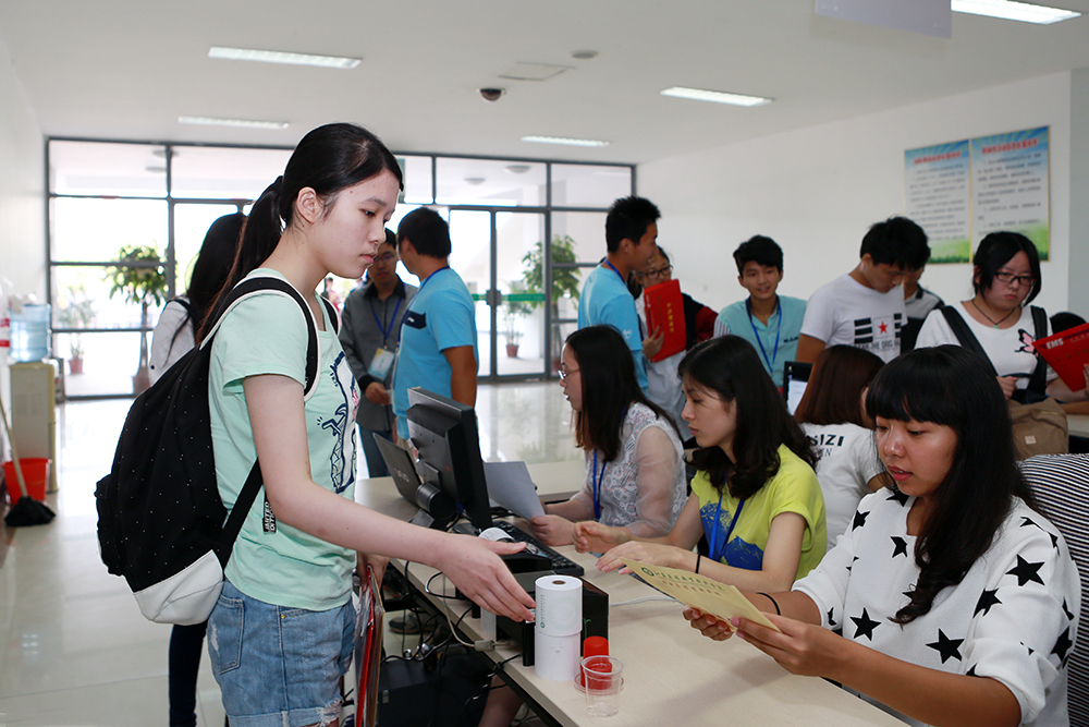 而现场的“一站式报到”方式让新生们更感受到流程便捷服务贴心。各迎新工作组通力合作,志愿者们一对一服务新生,从路程指引、材料审核、资料领取、办理住宿等多方面提供帮助,整个报到现场,秩序井然,快捷高效。