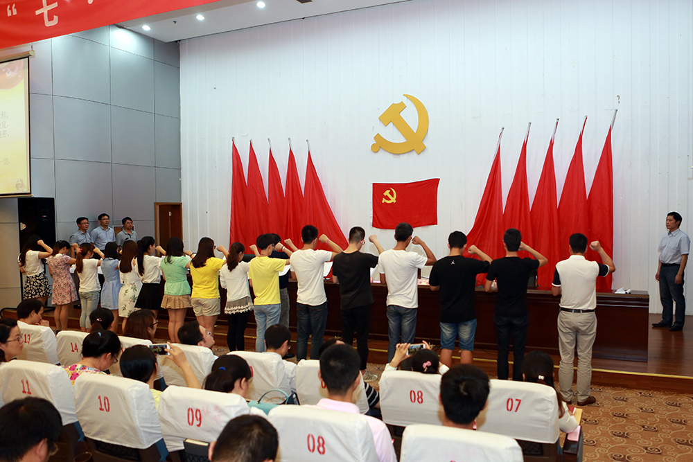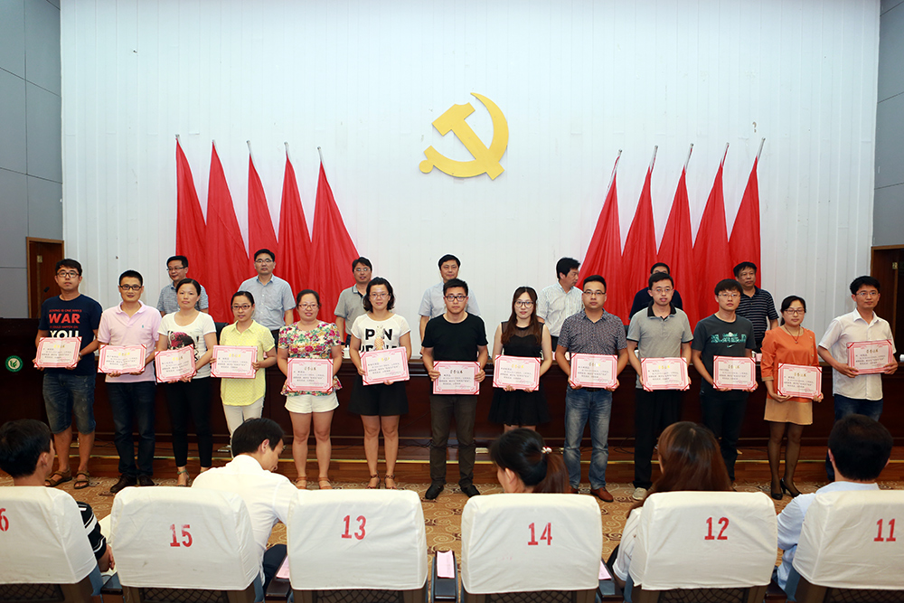 学院党委委员、副院长简祖平同志宣读学院党委《关于表彰先进基层党组织、优秀共产党员、优秀党务工作者的决定》,对在学院各项工作中涌现出来的先进基层党组织和优秀共产党员、优秀党务工作者进行了表彰。先进党总支代表刘永华、优秀共产党员代表关颖分别作了发言。16名新党员在学院党委委员、副院长周兴元同志带领下面对党旗庄严宣誓。