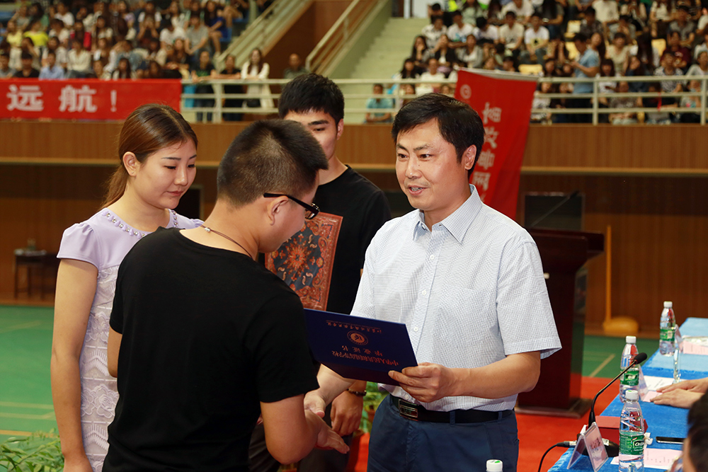 俞卫东书记向优秀毕业生代表颁发荣誉证书