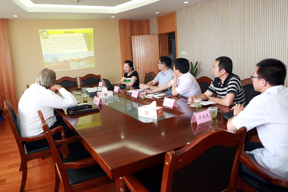 会谈中,曹仁勇副院长向客人介绍了学院的办学理念、办学特色、学科专业建设以及国际合作办学等方面的情况。范康普博士就朗蒂斯教育集团国际合作办学、专业设置、与中国方面的合作情况作了介绍,并就园艺技术专业BTEC课程项目进行了洽谈。双方表示将进一步保持沟通与联系,在学生培训和教师交流方面加强合作,共同致力于应用型创业人才的培养。