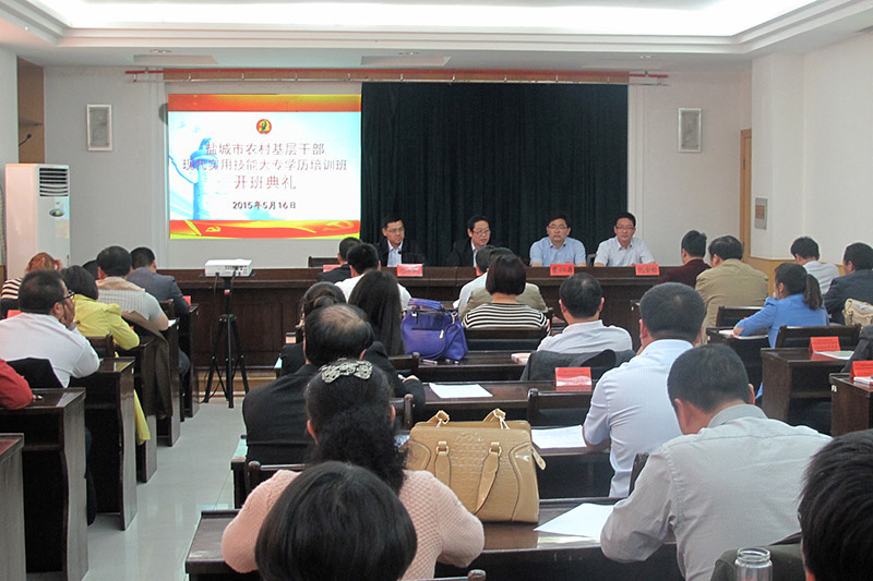 2014年永利官网与中共盐城市委组织部合作举办了面向盐城农村基层干部的函授专科班,共招收学员209名。5月16日上午,该班开班典礼在盐城市委党校报告厅隆重举行。学院副院长曹仁勇,中共盐城市委组织部副部长刘海、组织一处处长沈卫民、盐城市委党校副校长仇金标及来自盐城大市区的56名农村基层干部学员参加了开班典礼。