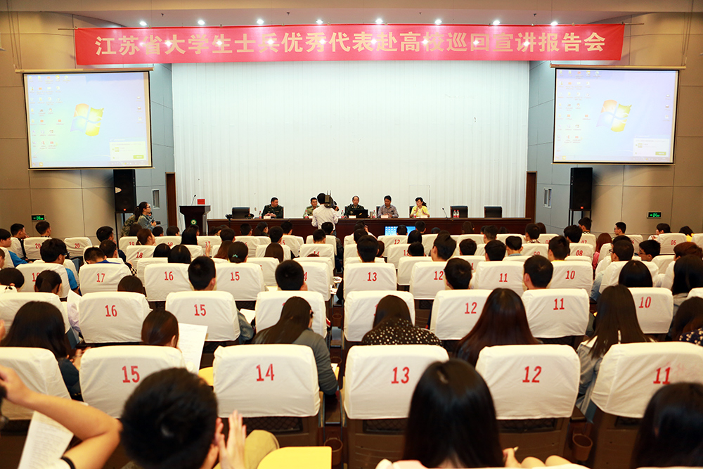 5月4日上午,由省征兵办和省教育厅联合组成的大学生士兵优秀代表赴高校巡回宣讲报告会在永利官网图书馆报告厅举行。南京陆军指挥学院首席教授、博士生导师黄培义少将作主题报告,镇江军分区陈廷震参谋主持了报告会,简祖平副院长致词,永利官网相关部门负责人和320余名学生代表参加了报告会。 组织大学生士兵优秀代表赴高校宣讲,是我省征兵工作的一项新举措,也是永利官网开展夏季征兵工作的一次总动员。简祖平副院长在致词中指出,我们要以这次报告会为契机,进一步增强同学们的国防意识,提升广大学生投身国防、保卫国家的热情,为永利官网的国防教育工作打下扎实的基础。 报告会上,5名优秀大学生士兵畅谈从军经历,讲述军旅故事,分享经验体会,回顾了自己由一名大学生成长为一名优秀士兵的历程,号召大学生们要胸怀祖国,献身国防,自觉投身到军营这所大学校大熔炉去摔打磨炼。黄培义少将作了题为《我国的国家安全和战略举措》的主题报告,报告分析了当前的国际格局、安全形势和我国的战略举措。 会后,句容市人武部征兵办还组织了征兵政策咨询活动。