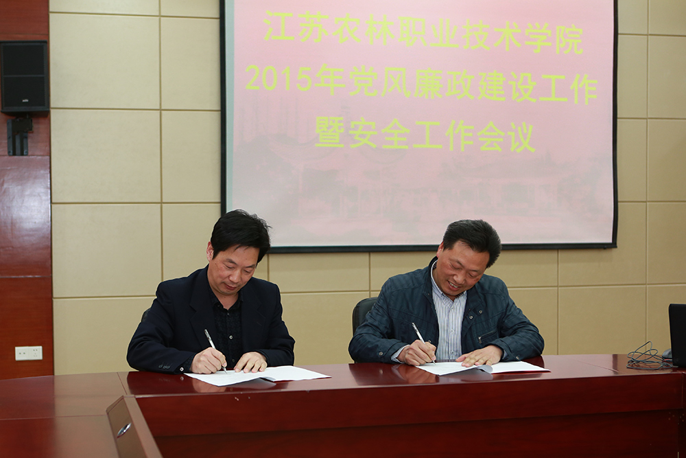 会上,大家收看了预防职务犯罪警示教育片,俞卫东书记代表学院党委和各系、各部门代表签订党风廉政建设责任状,巫建华院长代表学院和各系、各部门代表签订了安全工作责任状。