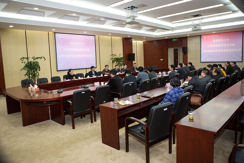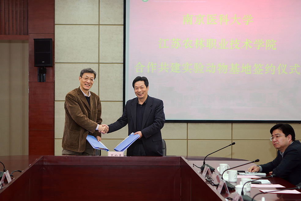 4月8日下午,永利官网和南京医科大学“合作共建实验动物基地”签约仪式在永利官网综合楼九楼会议室隆重举行。南京医科大学党委书记陈琪、校办主任吴彬江、科研处处长张正东、句容市委书记尹卫东、学院党委书记俞卫东、院长巫建华以及相关部门负责人出席了签约仪式,学院副院长曹仁勇主持签约仪式。南京医科大学党委书记陈琪和学院院长巫建华代表双方签署了合作协议。 签约仪式上,南京医科大学戴一凡教授介绍了实验动物基地的有关情况以及所在科研团队的研究内容和成果。句容市委书记尹卫东在讲话中对此次合作表示祝贺,并就两地医学领域其它方面的合作寄予厚望。 学院党委书记俞卫东在讲话中表示,学院将以此为契机,积极推动两校科研方面深入合作和交流,提升永利官网科研水平。 此次合作共建的实验动物基地位于江苏农博园内,建成后将作为江苏省医药实验动物基地和江苏省异种移植重点实验室动物培育基地。