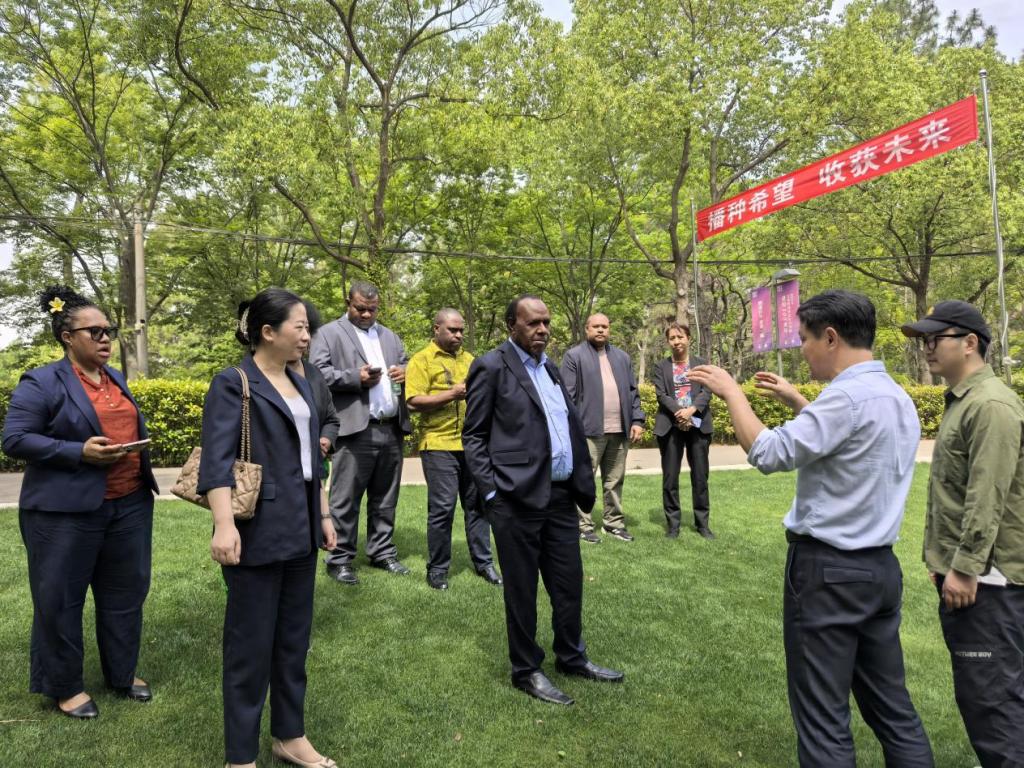 5月18日上午,巴布亚新几内亚驻华大使善德思·卡姆巴内及夫人、参赞乔伊斯·邦杜、一等秘书鲁本·恩诺克与镇江市外办礼宾新闻处处长童松强等一行10余人来访学院,并参观了学院学生实践基地江苏农博园,学院党委委员、副院长王瑾及外事办、国际教育学院、江苏农博园相关负责人一起接待了来宾。