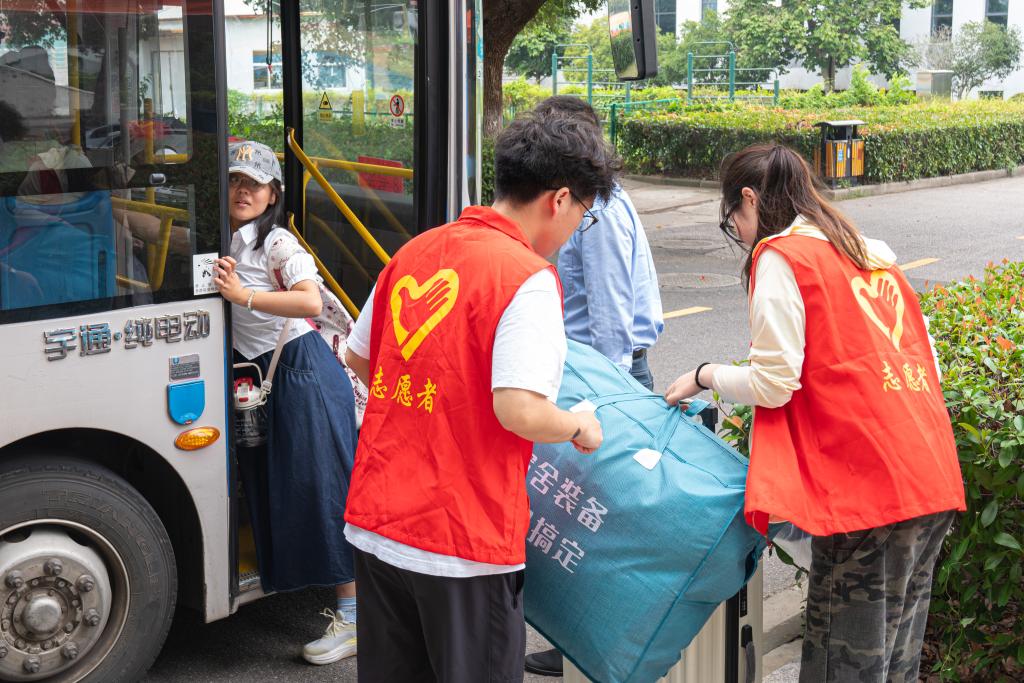 志愿者们身着统一标识服装,忙碌在校园的各个角落。他们前往句容汽车站迎接新生,协助搬运行李、指引路线、办理入住,提供周到细致的服务,用实际行动传递着农林学子的热情与温暖。