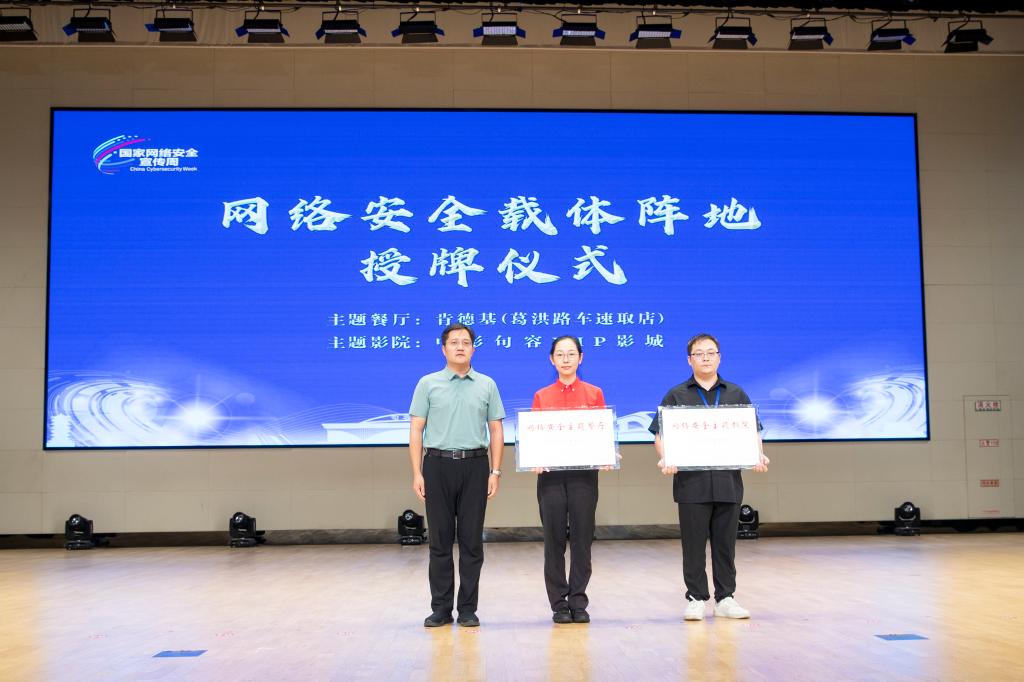 网络安全宣传周启动仪式上,曹仁勇代表学院致辞,希望将以此活动为契机,深化与句容市的“政校地”合作,将网络安全教育融入人才培养全过程,致力培养“懂农业、善数字、守安全”的复合型人才,共同守护数字时代的“绿水青山”。胡光亮为主题餐厅及影院授牌。