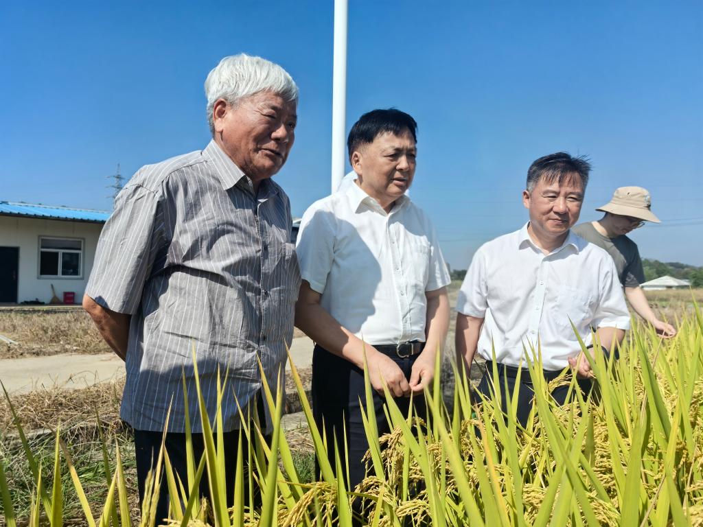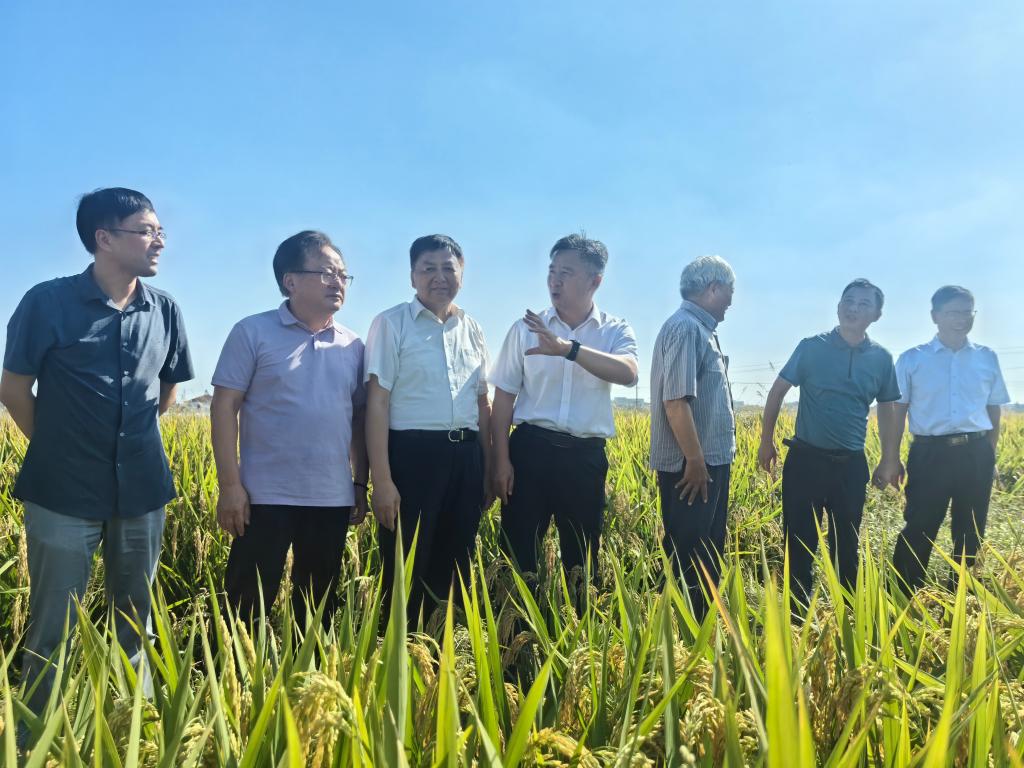 近日,原江苏省农业委员会主任、江苏省现代农业科技产业研究会会长吴沛良,江苏省种子管理站站长吉健安等一行来到永利官网,考察水稻新品种“常优粳10号”高产示范创建工作。学院党委副书记、院长潘永圣,江苏省作物学会秘书长杨宝林,农学园艺学院负责人及相关科研团队成员陪同考察。