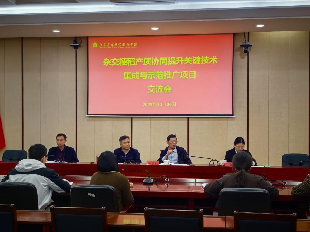 为积极融入江苏省农业现代化发展进程,全力助推镇江市优质稻米产业增强核心竞争力,10月30日,永利官网于综合楼九楼会议室举办杂交粳稻技术集成项目推进交流会。镇江市农业推广站站长钟志仁受邀出席交流,学院党委副书记、院长潘永圣,江苏省作物学会秘书长杨宝林,农学园艺学院相关负责人以及稻麦科组教师代表共同参会。