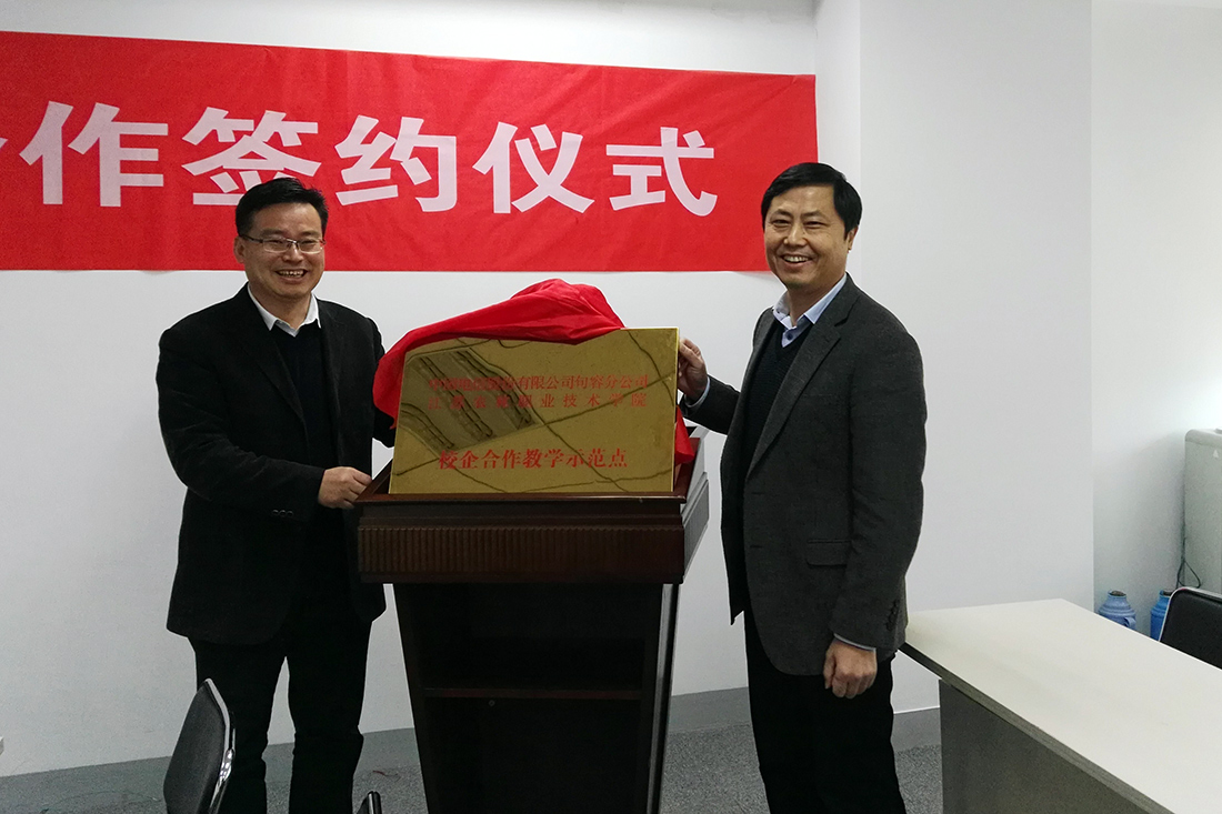 签约仪式上,俞卫东书记、张洪贞副总经理共同为双方校企合作教学示范点揭牌。