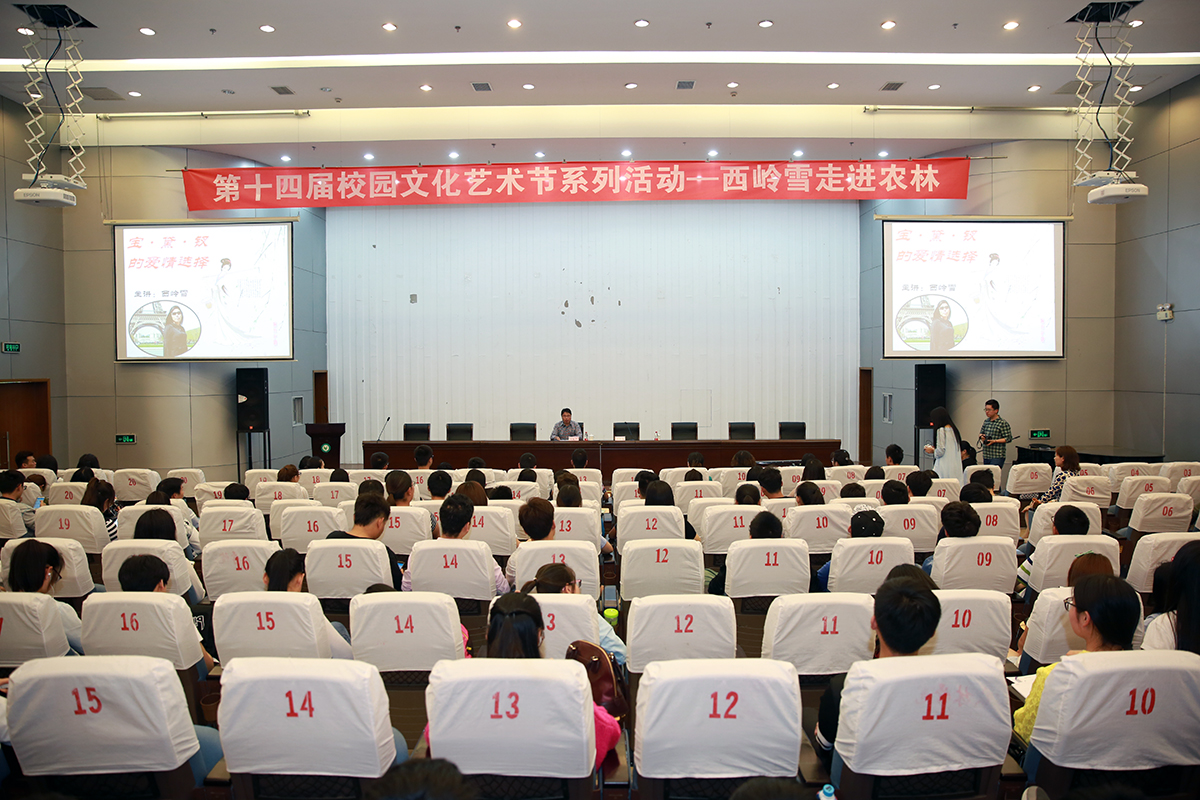 5月12日下午,由学院团委举办的“第十四届校园文化艺术节系列活动——西岭雪走进农林”在永利官网图书馆报告厅举行,学院副院长简祖平与300名师生共同聆听了精彩讲座。
