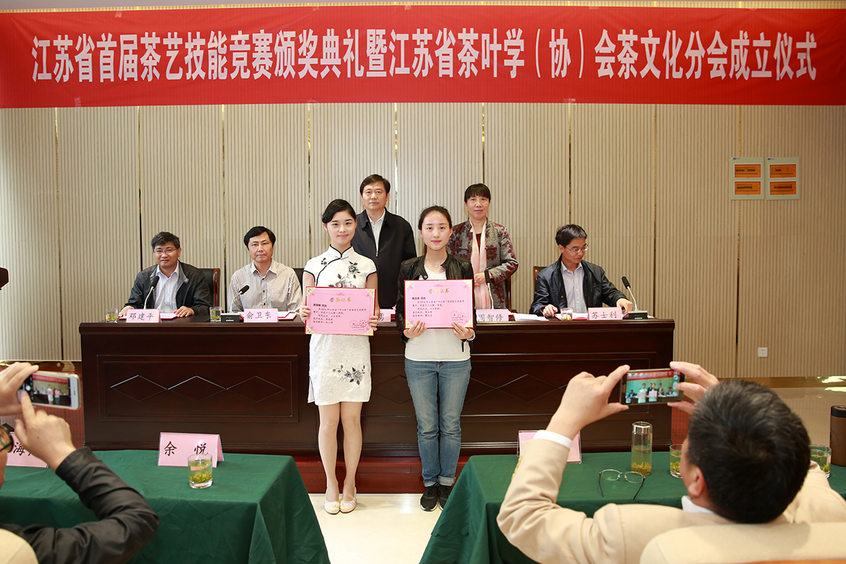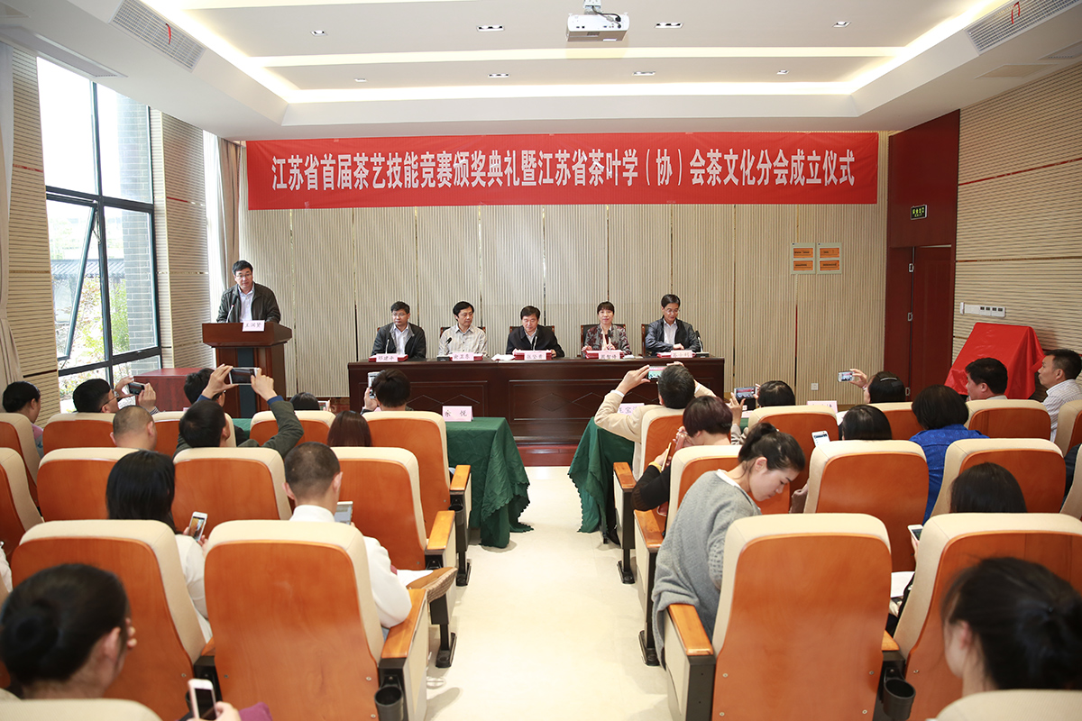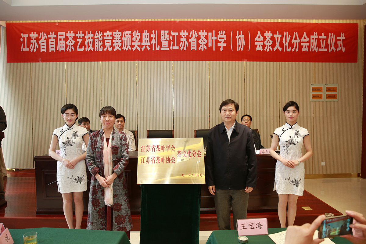 在闭赛式上还举行了江苏省茶叶学(协)会茶文化分会成立仪式。江苏省茶叶协会秘书长唐锁海介绍分会成立情况并宣读成立江苏省茶叶学(协)会茶文化分会的批复。江苏省农委副主任张坚勇和中国茶叶协会秘书长周智修为江苏省茶叶学(协)会茶文化分会揭牌。