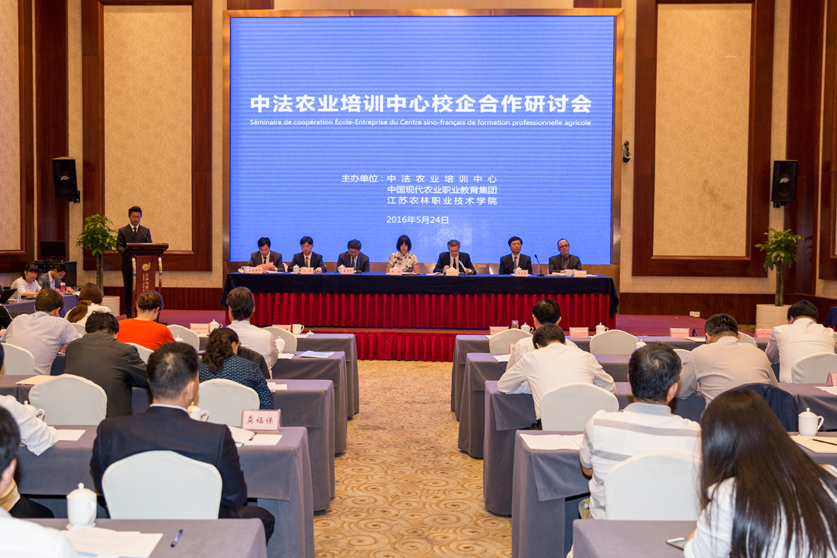 2016年5月24日,由中法农业培训中心、中国现代农业职业教育集团和永利官网主办的中法农业培训中心校企合作研讨会顺利召开。法国驻华大使馆农业事务副参赞辰好先生、法国驻华企业代表Yann morel先生、国家农业部科教司副处长靳红、江苏省农委科教处处长姜雪忠、学院党委书记俞卫东、隆平高科董事长秘书刘俊及法国在华相关企业代表、职教集团常务理事单位、院校培育的新型经营主体代表等出席会议,会议由学院院长巫建华主持。