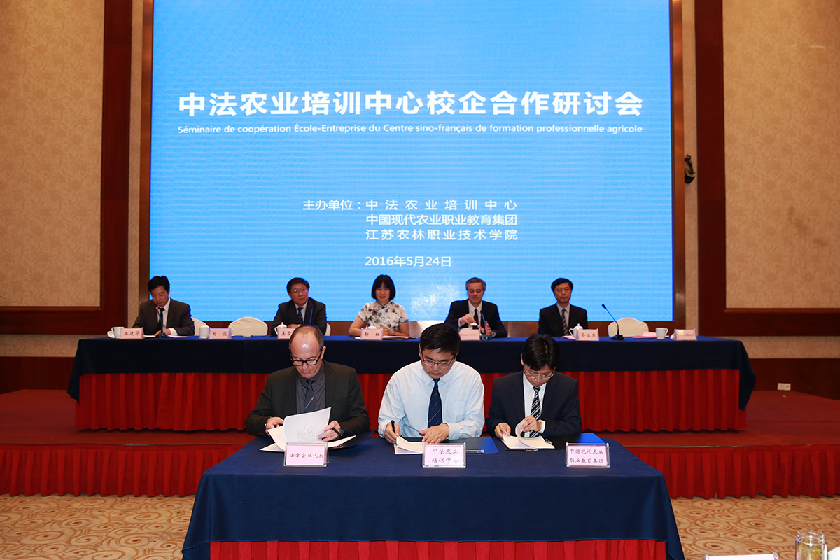 会议宣读了中国现代农业职业教育集团与法国在华涉农企业合作宣言,并举行了校企合作签约仪式。