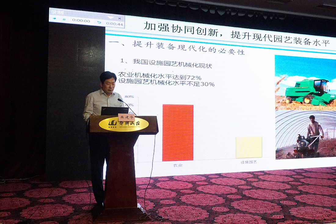 5月18日-20日,巫建华院长参加了由中国蔬菜协会、山东省农业厅联合主办的2016年中国蔬菜产业大会,并在大会上做了“加快协同创新,提升现代园艺装备水平”的主题报告。巫院长在报告中分析了我国当前园艺产业机械装备的现状,提出了主要园艺作物产业链全程机械化整体解决方案。同时,向与会代表展示了江苏现代园艺工程技术中心在草莓、叶菜等全程机械化方面的科研创新成果。