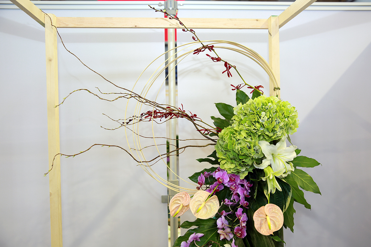 现场,来自全省各地的14名选手根据专家组赛前选定模块“自由命题花艺作品设计与制作”的形式要求,充分利用赛场所提供的花材和结构,大显身手,修剪、造型,再选搭合适的饰物,在180分钟内创造出各式各样构思巧妙、新颖别致的花艺作品。