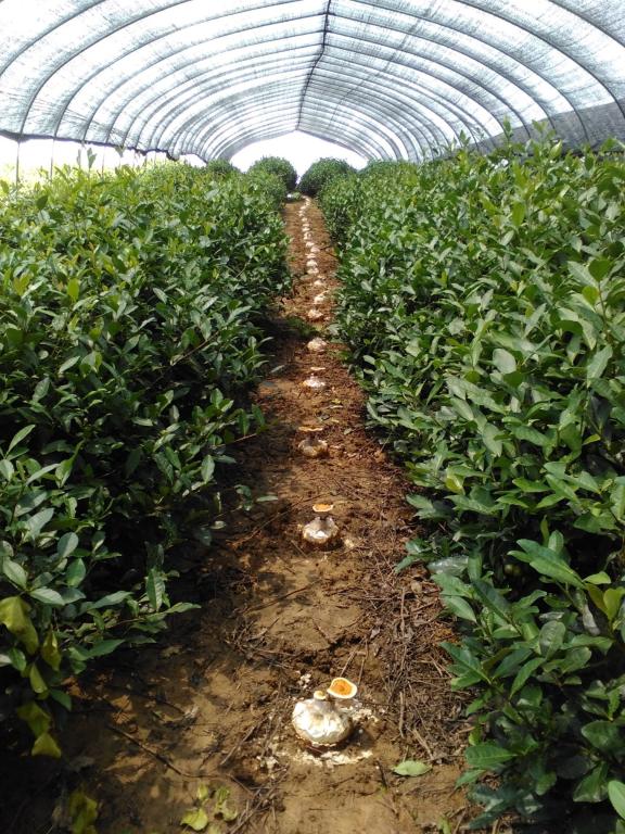 永利官网积极响应句容市委市政府政校创新创业合作的号召,与句容市农委开展项目合作,实现科技成果就地转化。2016年5月,食用菌技术团队在句容市方山茶场和句容市茅山茶场进行茶园套种灵芝技术的推广,目前实施基地灵芝长势喜人。