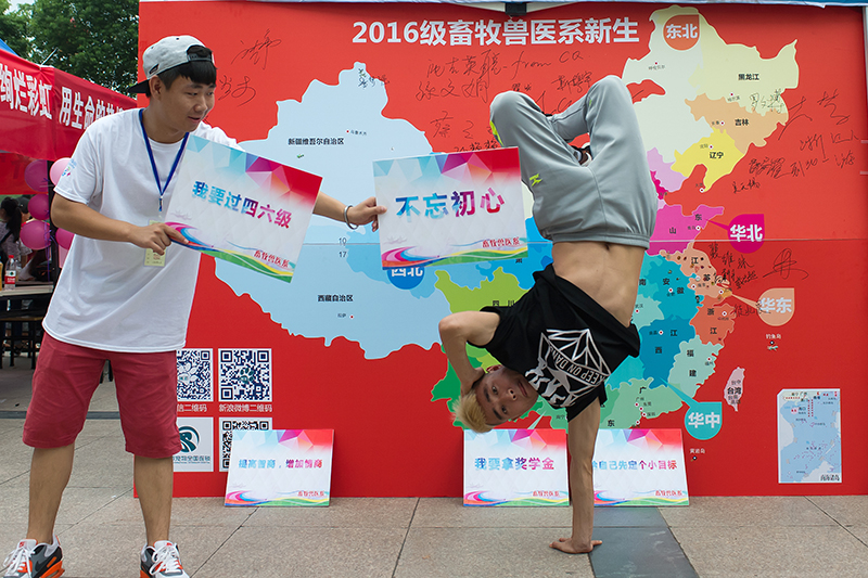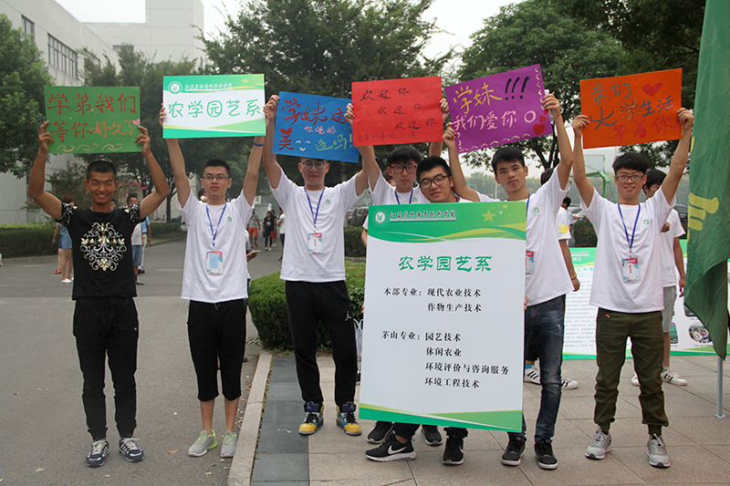 迎新当日,学院各系部频出高招,个性标语、专业特色加上温情接待,给新生留下了深刻印象,更是给新生及家长展现了专业魅力。由学院心理健康教育中心主办、风景园林系承办的“欣欣向荣,心心向农”学院第二届迎新心理交流会和“当一颗园林螺丝钉”等特色活动传递着对新同学的关心与祝福。信息工程系“微微一笑遇农林”和“航拍机迎新”突显了青春创意和人文关怀两大特色。经济管理系将具有经济管理专业特色的“计算器”模型融入到展板祝福中,新生们可以随机点选计算机按键挑选下自己新学年的祝福。人文艺术系双主题迎新活动“我的大学第一天”、“新生公约”则引导新生树立大学理想,发现美好大学生活!“恰好的青春,恰好遇见‘农’”农学园艺系迎新活动丰富多彩,“NEW FACE NEW HOPE”、“大学第一天,给自己定个小目标”、“教师寄语——致有梦想的你们!”、“家长寄语——致我最亲爱的孩子”等让家长和新生们惊喜连连。志愿者们还给农艺的“小米粒”们赠送了可爱的小种子,希望他们能在大学里播种快乐,播种希望。机电工程系师生为16级新生精心准备了暖心活力套餐。网络红人熊本熊、颜值担当劲舞团、校舍怀旧明信片、全体教师的一封信,让新生们体会到了机电系大家庭满满的爱。生物工程系心“新”相印活动,为新生提供“手绘地图把航导 防骗妙招来保驾”,学生扫描二维码关注公众号,便可轻松获得校园手绘地图、防骗知识、院系动态等资讯。畜牧兽医系“手绘学院地图”让新生们第一时间了解到校园布局,布满了希望和梦想的“亮出你的大学心愿”展板前则留下了新生们宝贵的记忆。“花”样倍出的迎新节目、热情周到的志愿服务、开心喜悦的新同学们……成为了校园里最悦目的风景。