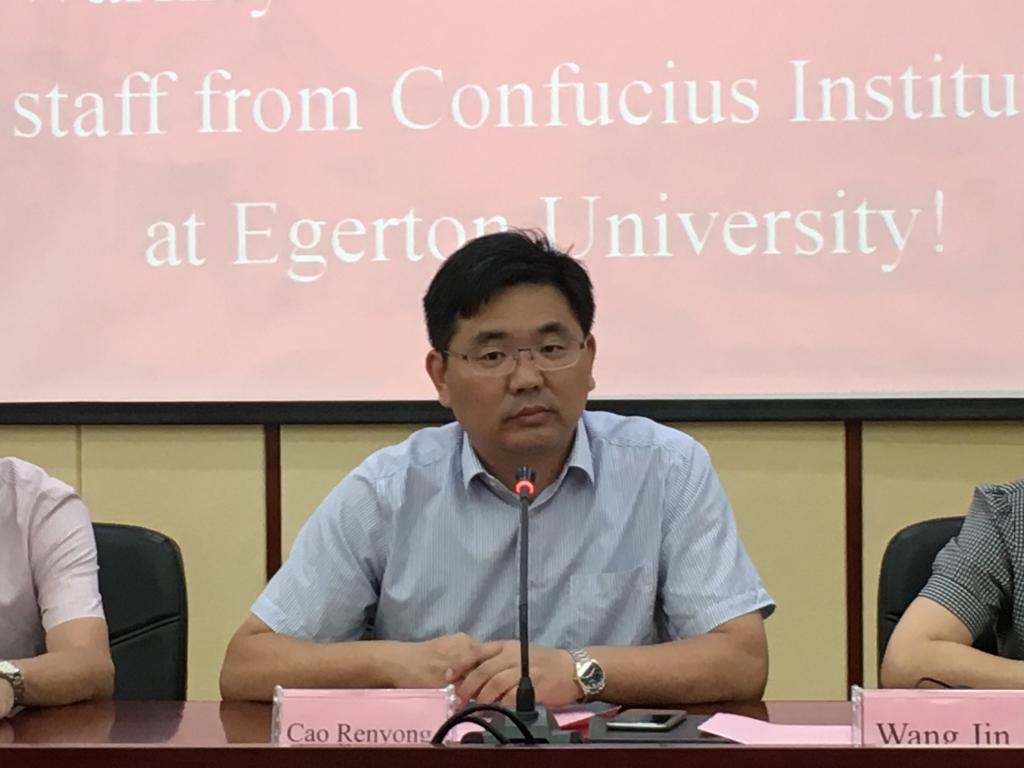 学院副院长曹仁勇出席欢迎仪式并向来自肯尼亚埃格顿大学孔子学院教育代表团的学员们介绍了永利官网的发展成就、办学特色和国际交流等情况。学员代表Joshua O.Ogendo介绍了埃格顿大学孔子学院的办学条件、师资水平等总体情况,并代表全体学员对永利官网提供的学习交流机会表示诚挚的感谢。