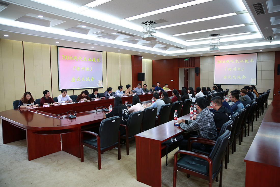 10月8日下午,永利官网2016级现代农业技术(扬州班)座谈交流会在综合楼九楼会议室举行。学院党委书记俞卫东、江苏省农委科教处处长姜雪忠、扬州市农委副主任王友芳、扬州市农委科教处处长苏家富、扬州市农广校校长郑伟以及永利官网相关部门负责人出席了座谈会。会议由简祖平副院长主持。