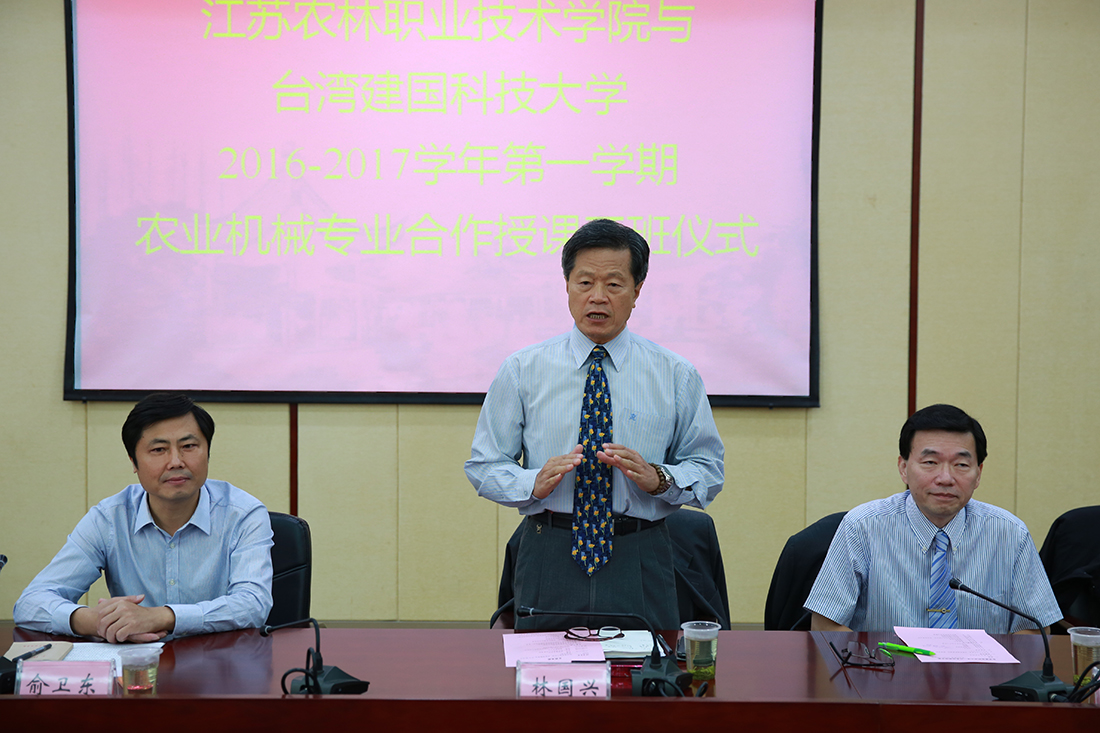 林国兴副校长向师生们介绍了建国科大的办学历史、农业机械专业的师资力量及大陆学生在建国科大研修学习情况等。