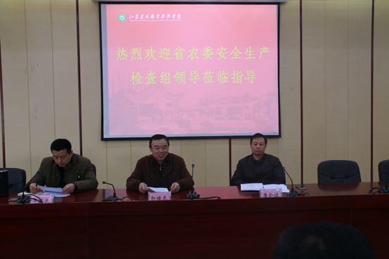 检查汇报会上,和绪光组长首先传达了省委及省农委对于省直属单位安全生产工作的具体要求,并通报了各直属单位的安全工作状况。随后,汪建春副处长分别从消防安全、食品安全、交通安全、危化品安全管理、学生生活区和学习区安全管理方面汇报了永利官网2016年的安全工作开展情况及今后工作安排。