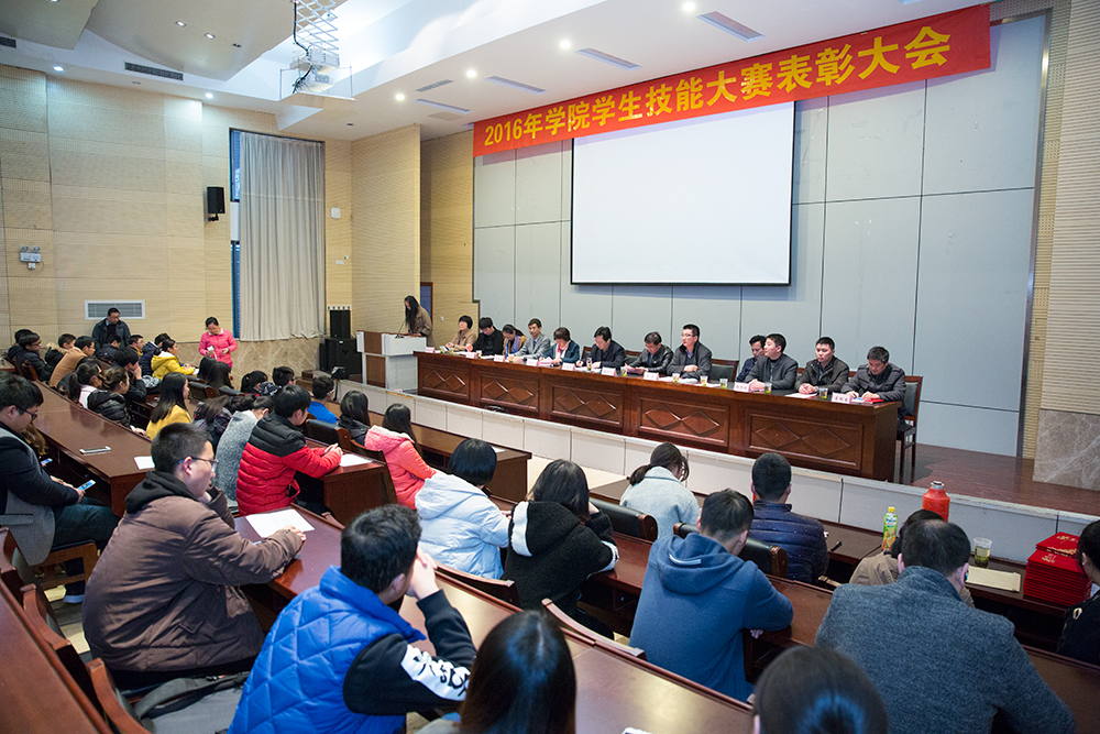 12月6日,永利官网2016年度学生技能竞赛月活动闭赛式在研发楼报告厅举行。院长巫建华出席仪式并讲话,副院长周兴元宣读比赛成绩。教务处及各系部负责人、优秀指导老师、部分获奖学生参加了闭赛式。