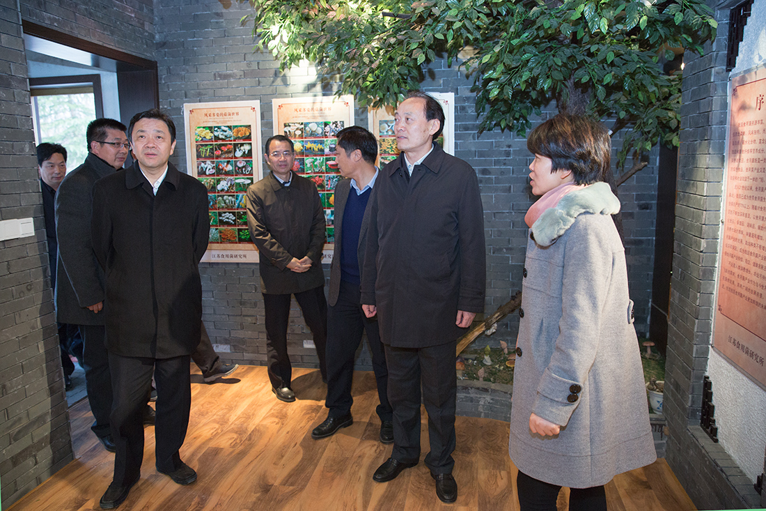 江苏省省政府副秘书长杨根平、省农委主任吴沛良、副主任蔡恒、学院党委书记俞卫东、院长巫建华等领导陪同考察。