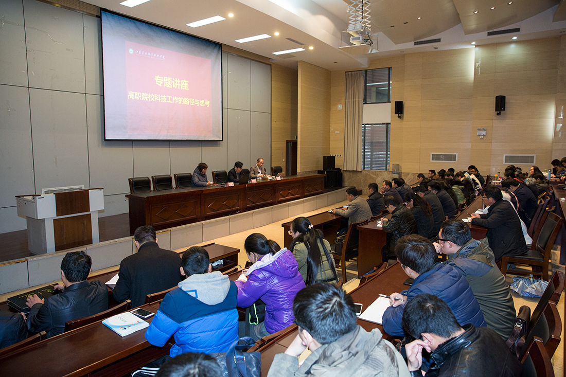 12月21日下午,“高职学院科技工作的路径与思考”专题研讨会在研发楼报告厅举行,院长巫建华、副院长贾君和140多名教师代表参加了会议。