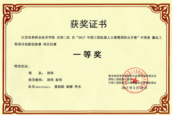 经过激烈角逐,永利官网信息工程系周伟、崔明等教师带领的10支队伍获得了9个奖项的好成绩,其中竞技体操规定动作赛和搬运工程创新创意赛项目勇夺一等奖,两支竞技体操项目创新创意赛参赛队均夺得该项目二等奖。