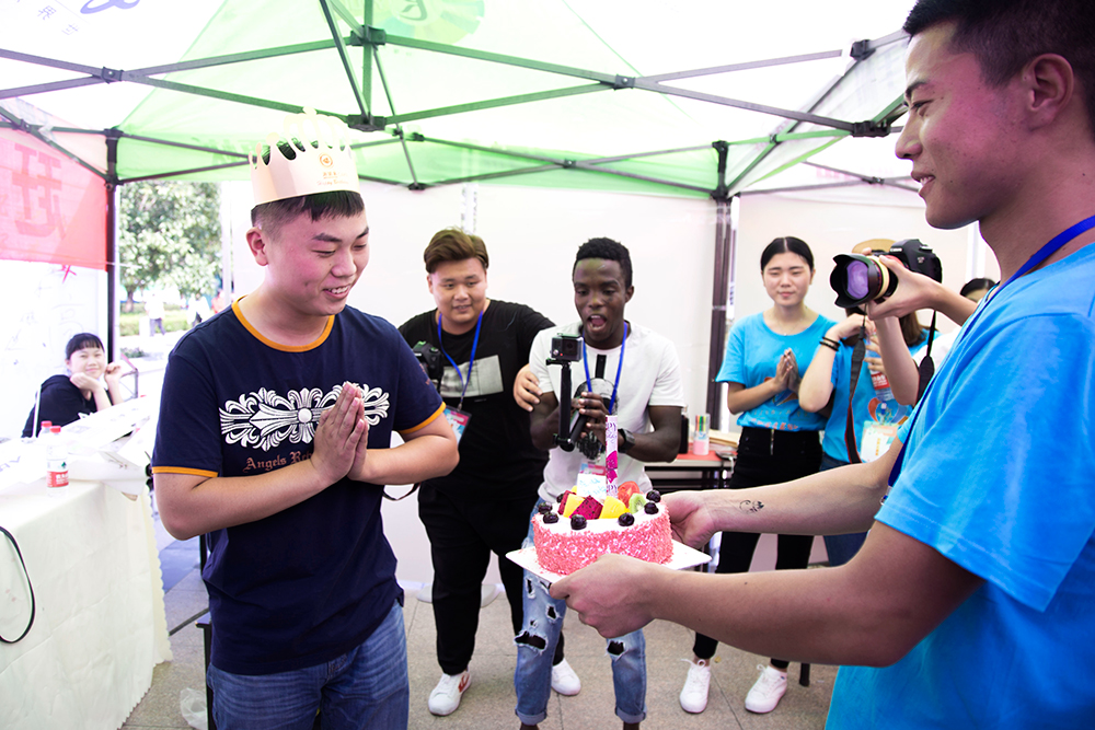 风景园林学院“我的学院我骄傲”、“我的社团我做主”、“我的文体我来SHOW”、“我的实训我奋斗”展架,给报到的新生及家长们留下了美好的第一印象。艺术插花、家具模型更是直观地展示了风景园林学院的特色。畜牧兽医学院迎新现场的“大转盘抽奖”、“迎接新征程 奋斗圆梦想”签名大展板、“大学第一拍”、“多彩水族箱”有着浓浓的专业特征,让人眼前一亮。农学园艺学院以“蜗牛慢递”、“筑梦影音室”和“筑梦红包”这三种新颖的形式,开展了“喜迎党的十九大,追梦筑梦新起航”迎新生活动。茶与食品科技学院“缘来一家人”迎新活动,为新生拍摄“全家福”,留下难忘瞬间,同时还邀请新生及家长品尝了学生们自制的食品。机电工程学院在报到现场架起了合影墙,新生可以找到自己的家乡,挑选自己心仪的感言,留下在农林的第一张照片。当天,学院还同时举办了“转动机域齿轮 打开智慧人生 走进机电工程学院”开放日活动。信息工程学院的三位新同学在报到日恰逢生日,当他们到达报到现场后,志愿者们悄悄点上生日蜡烛,唱着生日歌,捧着生日蛋糕,为他们送上来自学校的的祝福!经济与人文学院“小菁人”志愿者团队,确保了迎新工作高效有序进行,现场的“我从这里来农林”迎新板和“不忘初心、预见未来”照相板更是让新生及家长纷纷驻足留影。茅山校区的新生辅导员寄语展板、“校园之星”展板等,让新生多角度了解即将迎来的新生活。