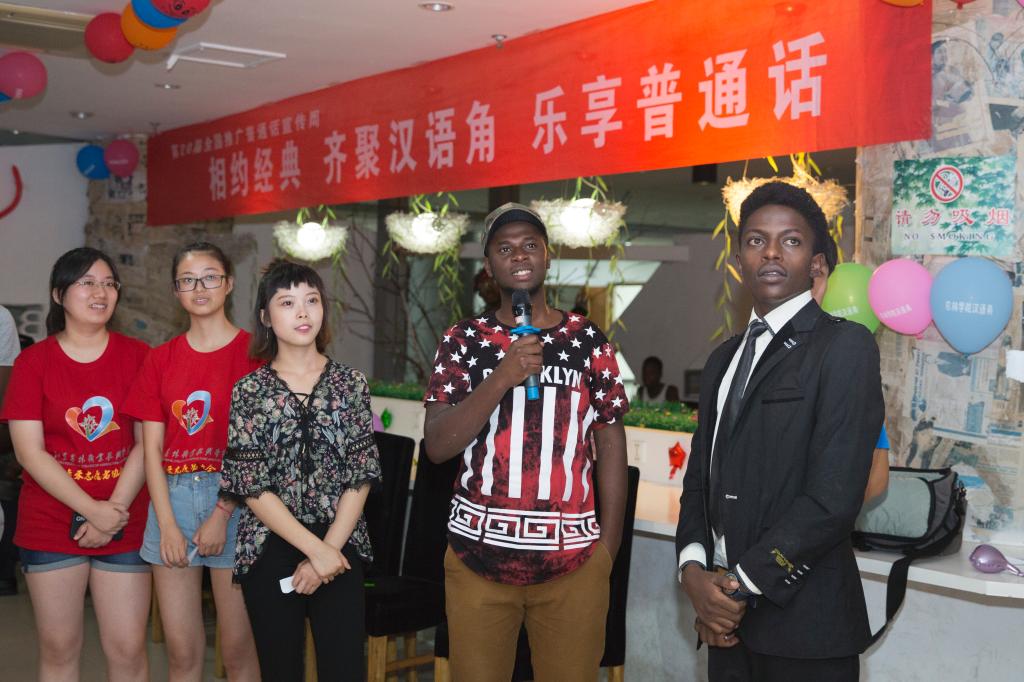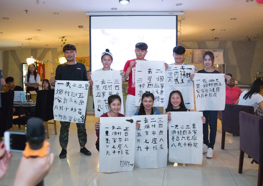 相约乐享汉语。9月15日晚,作为“推普周”活动的重要一环,以“相约经典,乐享普通话”为主题的“汉语角”特别活动如期进行,永利官网十五位中国学生与六十多位留学生欢聚图书馆一楼学习吧,一起诵读唐诗、写毛笔字、玩文字接龙游戏等等,使留学生真正零距离接触中国文化,深切感受中华优秀传统文化的独特魅力。