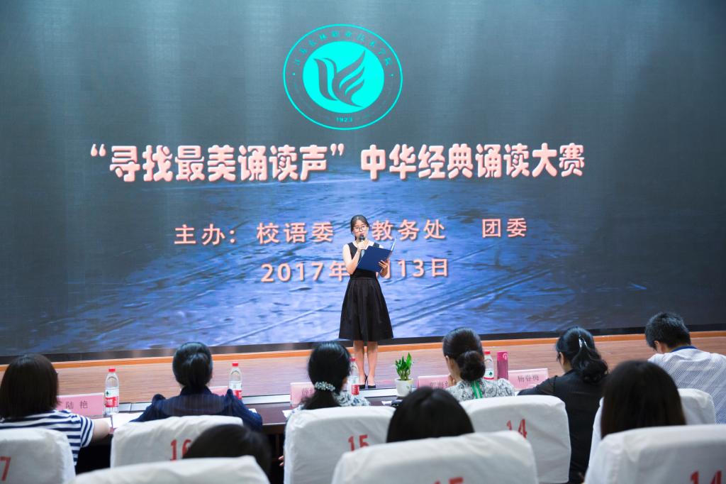 诵读传承经典。9月13下午,“寻找最美诵读声”中华经典诵读大赛决赛在图书馆一楼报告厅隆重举行。全校共9名教师、14名学生进入了决赛。选手们满怀激情地吟诵了《将进酒》《岳阳楼记》《春江花月夜》《祖国啊,我亲爱的祖国》《致橡树》等一系列中华经典作品,使在场的听众沉浸于美文之中,享受了一场难得的视听盛宴。两个小时的激烈角逐之后,教师组冠军由校团委傅浩兰老师夺得,学生组冠军为15现代农业2班王学嘉同学摘获,两位冠军得主同时荣获“yl7703永利官网最美诵读声”称号。农学园艺学院赵艳岭、经济与人文学院乔小倩、机电工程学院祁曼三位老师并列荣获教师组二等奖,13财务管理高职1班张崟钦、14园林高职1班戴旻乐两位同学荣获学生组二等奖。