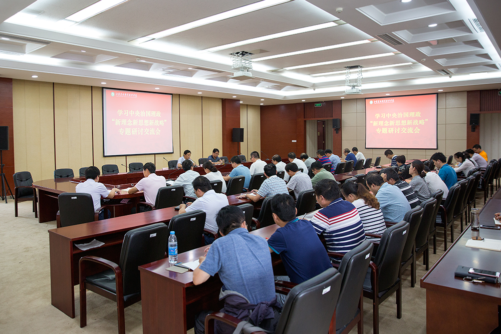 2017年9月22日,学院学习党中央治国理政“新理念新思想新战略”专题研讨交流会在综合楼9楼会议室召开。学院党委委员和全体中层干部参会。会议由学院党委书记俞卫东同志主持。