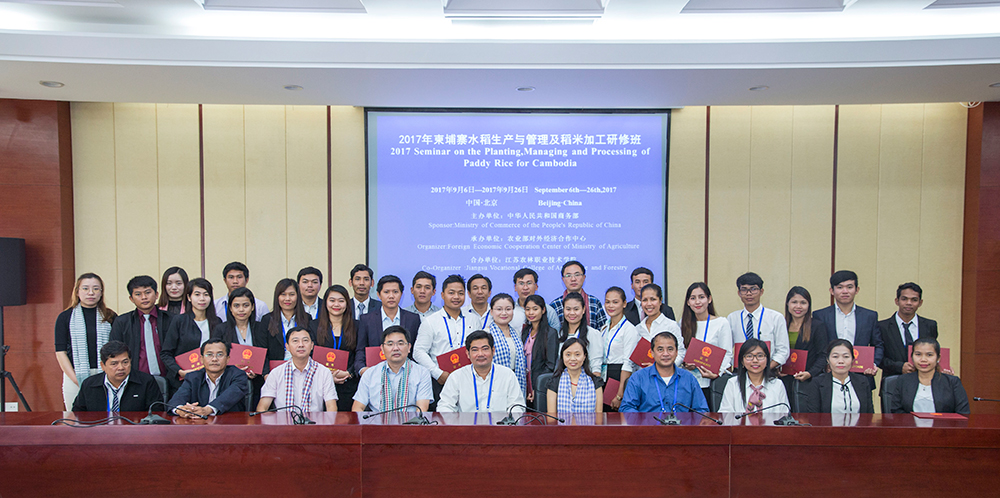 9月26日上午,柬埔寨水稻生产与管理及稻米加工研修班结业典礼在永利官网综合楼九楼会议室举行。农业部对外经济合作中心项目管理处处长张倩、学校副校长曹仁勇及相关部门负责同志参加了结业典礼。