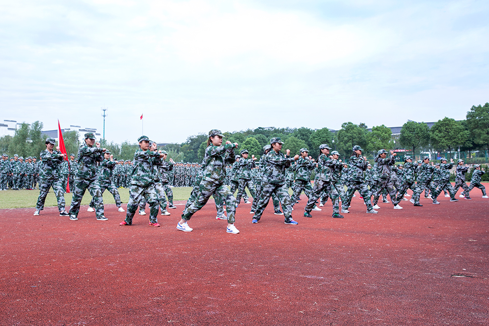 分列式结束后,同学们进行了气势恢宏的军训科目表演:男生方阵擒敌拳表演刚毅勇猛、虎虎生威;女生匕首操方阵英姿飒爽,刚中有柔;真实展现战场环境的男生战术方阵表演则干净利落,气场十足,现场精彩不断,掌声热烈。