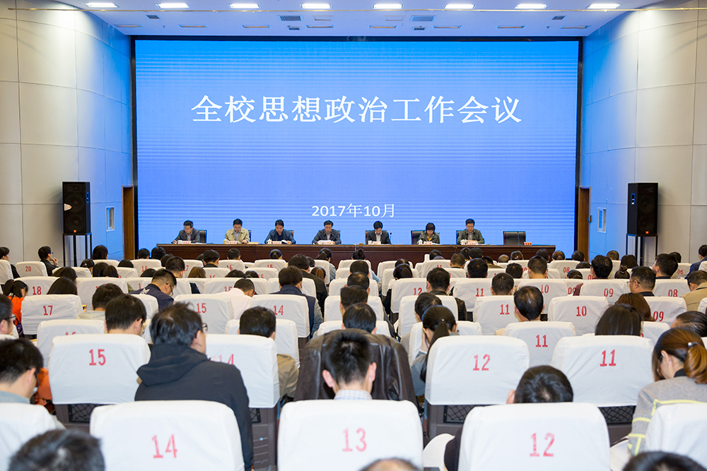 10月20日下午,永利官网在图书馆报告厅召开全校思想政治工作大会。会议全面分析了当前形势下做好思想政治工作的重大意义,明确了今后一段时期永利官网思想政治工作的总体要求、基本原则和重点任务。学院领导班子成员,全体中层以上干部,党委宣传部、组织人事处、学生工作处、团委等相关职能部门全体工作人员,思政课全体任课教师,全体辅导员、教师及学生代表等参加会议。