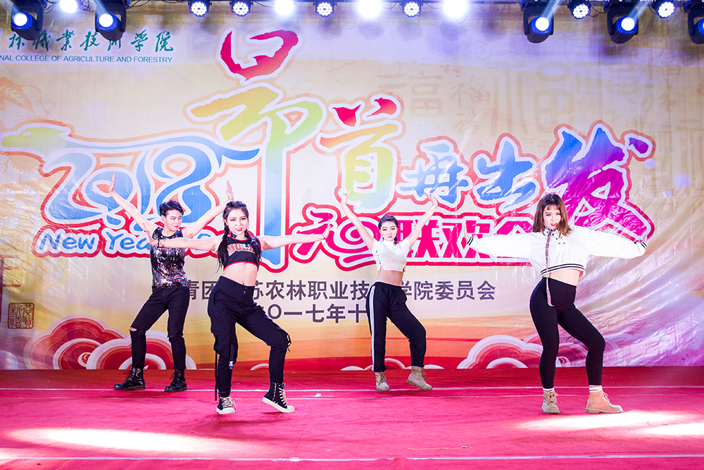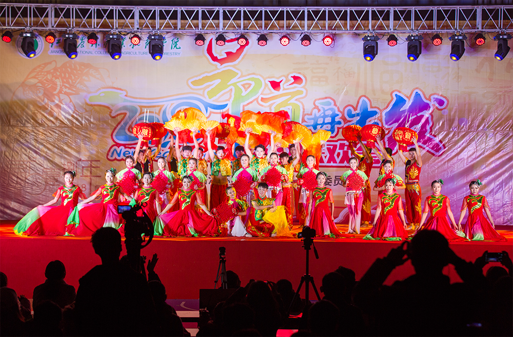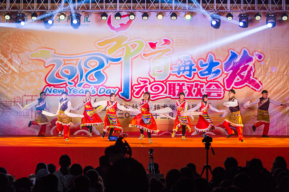 现场灯光璀璨、喜庆热烈。网络同步直播,让不能来现场的师生和朋友们实时观看到演出。舞蹈《中华全家福》拉开了联欢会的序幕,时尚动感的现代舞《像最后一样》、中国风的器乐合奏《赛马》、令人捧腹的群口相声《匆匆那年》、青春洋溢的吉他弹唱《夜空中最亮的星》和歌舞联唱充满了浓浓的青春气息和活力,掌声与笑声不断。歌曲《世界因你而美丽》表达了学生对老师的祝福,《回家的路》则唱出了家的温暖和对父母的感恩,精彩的武术表演《中国骄傲》展现了农林师生的精气神,舞蹈《欢乐的火把节》让现场成为快乐的海洋。联欢会还特别邀请了外国留学生和来自西藏、新疆的少数民族学生代表,他们用本国和本民族的语言表达了对全校师生的新年祝福,用歌声和舞蹈展现了异国风情和异域风采。在舞蹈《共圆中国梦》中,联欢会圆满落幕。