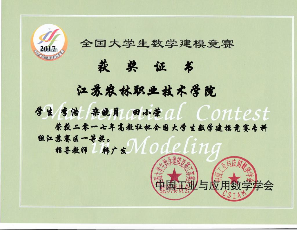 日前,2017年全国大学生数学建模竞赛结果揭晓,永利官网学子荣获江苏赛区专科组一等奖1项、三等奖1项。