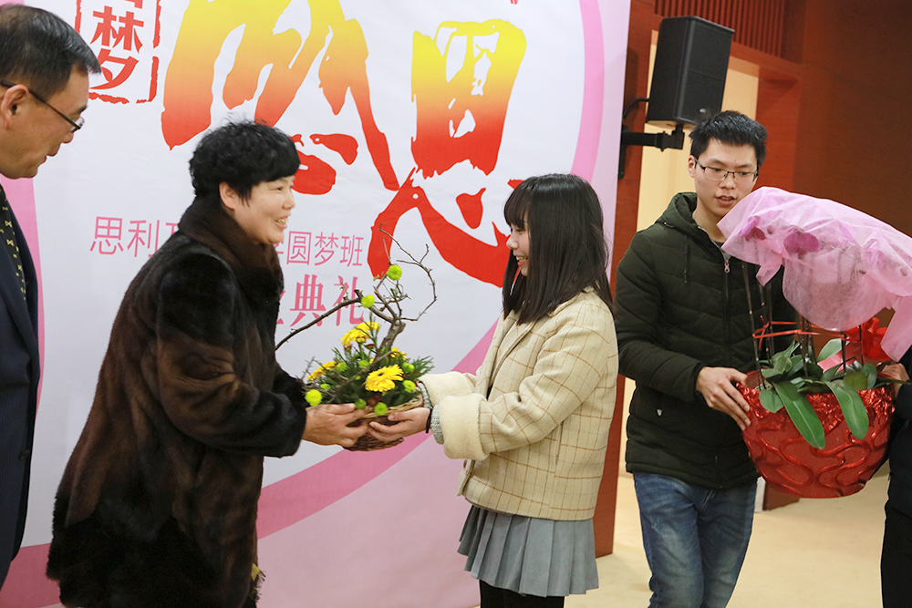 “思利及人助学圆梦园林班”学生用诗歌朗诵、古筝插花艺术秀等展示了他们学习成果,并向到场的嘉宾赠送感恩礼品,并表示在今后会一如既往努力学习,好好工作,尽自己最大的能力去回馈社会!