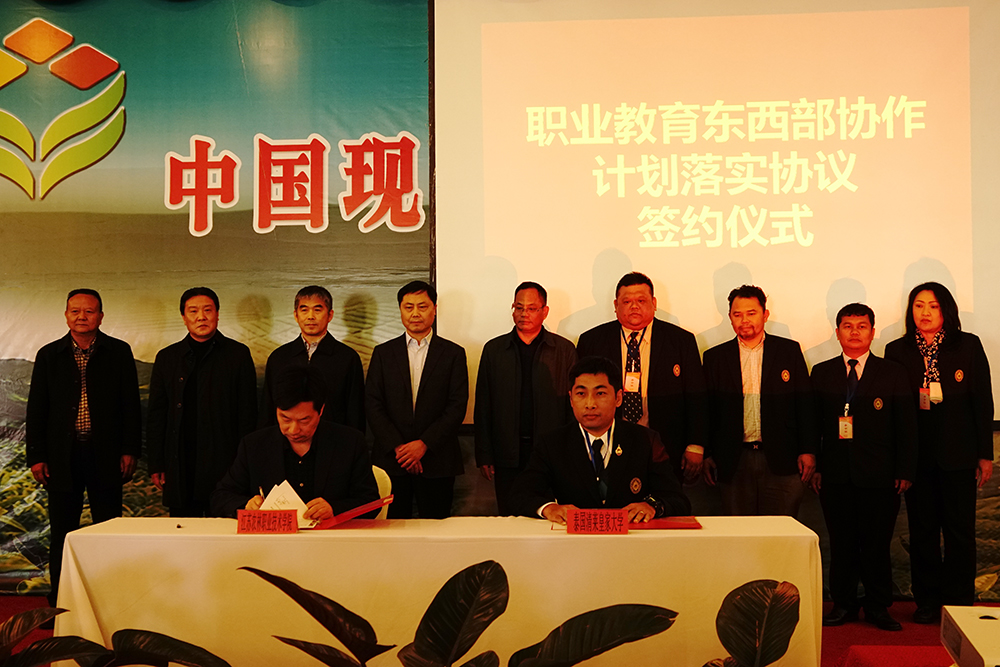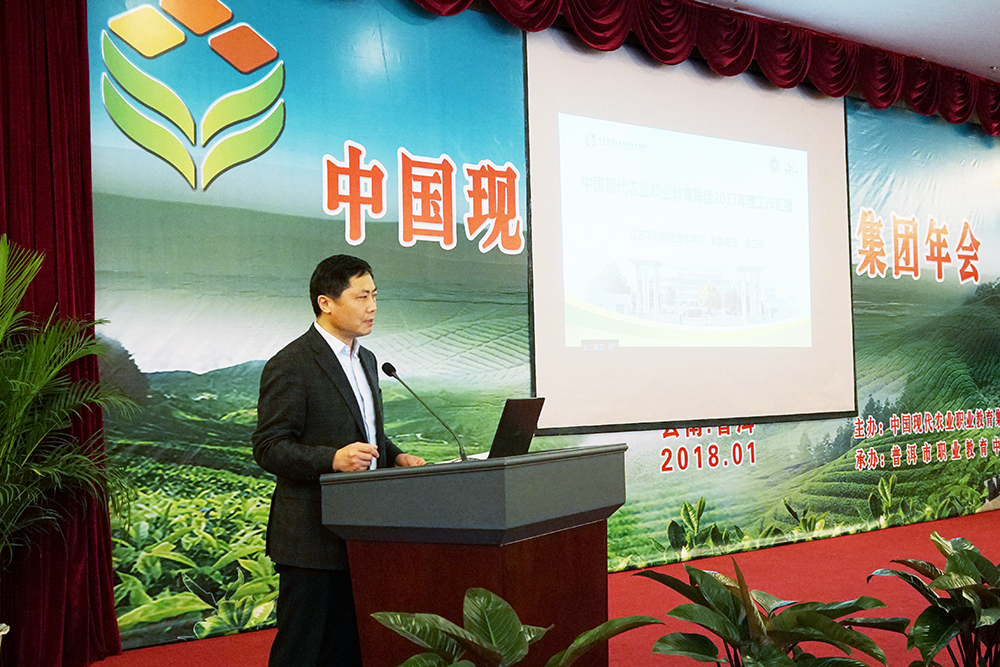 2018年1月16日,中国现代农业职教集团2017年度工作会议在普洱市职业教育中心召开。农业部中央农广校副校长齐国,普洱市副市长张若雷等领导出席会议并讲话。泰国清莱皇家大学科技学院院长皮拉帕努瓦.陈翁,老挝中老友谊学校校长许顺宏,法国农业部、农业学校及企业代表,普洱市教育局局长邱承勇,永利官网党委书记俞卫东、校长巫建华、副校长周兴元、贾君、曹仁勇以及职教集团相关成员单位代表参加了会议。集团理事长单位袁隆平农业高科技股份有限公司产业总监陈志新主持会议。