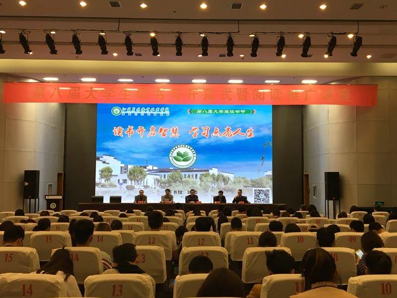 4月11日,以“读书开启智慧 学习点亮人生”为主题的第八届大学生读书节开幕式在图书馆报告厅开幕。学院党委委员、办公室主任毕德全,工会主席江德明,南京大学徐雁教授及数据库服务商、师生代表等共同参加了开幕式。