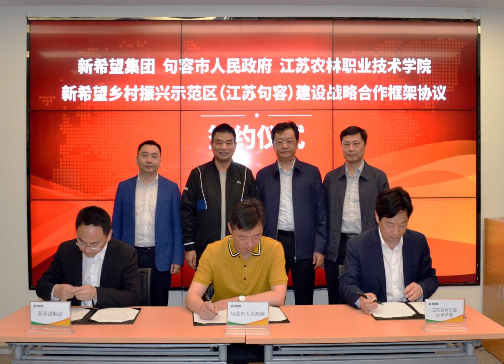 4月26日,新希望集团、句容市人民政府、yl7703永利官网在北京新希望集团总部洽谈三方合作事宜,并签订建设战略合作框架协议。三方约定在句容共建新希望乡村振兴示范区,筹建新希望大学。
