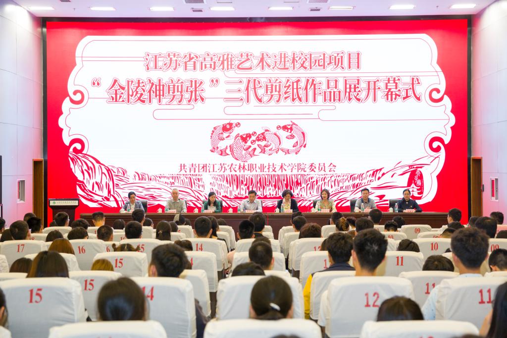5月3日下午,由江苏省教育厅、南京航空航天大学承办、永利官网协办的“高雅艺术进校园拓展项目——‘金陵神剪张’三代剪纸展”在学校图书馆开幕。江苏省教育厅体卫艺处副处长王红蕾,江苏省教育厅艺术教育委员会秘书长刘扬生,国家级非物质文化遗产代表性传承人、江苏省工艺美术大师张方林,南京航空航天大学艺术中心主任杨莉莉,永利官网党委书记俞卫东及相关职能部门负责人等出席开幕式。学院党委委员、办公室主任毕德全主持开幕式。