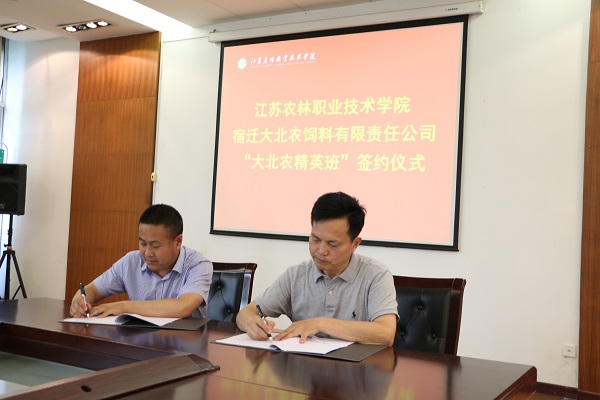 5月30日下午,畜牧兽医学院与宿迁大北农饲料有限责任公司共建“大北农精英班“签约仪式在学院中层干部会议室举行,学校副校长贾君,大北农集团宿迁公司法人代表郭训江、人力资源部经理冯靖捷及学院相关部门负责人出席了签约仪式。