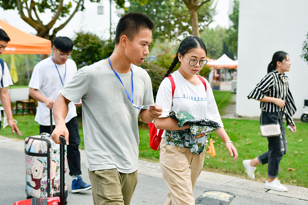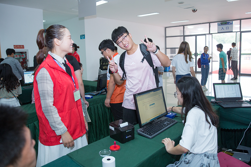在“欢迎你,新同学”的红色展板下,在亲友们充满希冀的目光中,大学生涯的画卷在新同学面前徐徐展开。今天,校园里人声鼎沸,热闹非凡。在综合报到现场,学院全面开启了“互联网+”模式,用全新的大数据服务迎新工作,不但让新生轻松完成入学报到,还为学校预判和调度接待提供不少预测信息。在各二级学院和茅山校区报到点,分管负责人、辅导员和学长学姐们热情迎接新生。“秋风尽染枫叶红,千呼万唤只为‘农’”、“羡慕你们,学长比傅恒英勇,学姐比富察聪慧”、“等了一个世纪,等到了最可爱的00后”等横幅版“微语录”;印有地图、心愿等的纪念墙;社会主义核心价值观“胖瘦墙”………到处都是热情洋溢的笑脸、妙趣横生的创意,在与农林相遇的第一天,向新同学们致以最亲切的问候。校园里,迎新志愿者们忙前忙后,使出“十八般武艺”,只为让新生们感到家的温暖。学生公寓里,宿舍管理员们正为大家讲解公寓的注意事项。停车场、校门口,保安人员则忙着维持交通秩序,帮新生家长们指路。