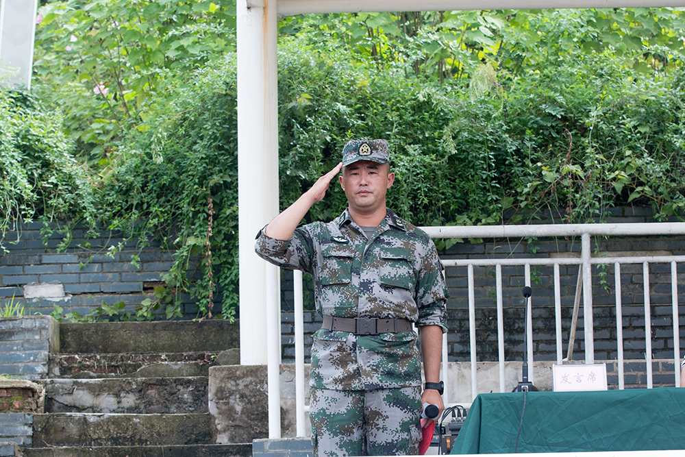 典礼最后,俞卫东书记向2018级新生军训团团长孙小明中校授予军训团旗,郑重宣布学院2018年新生军训正式开始。