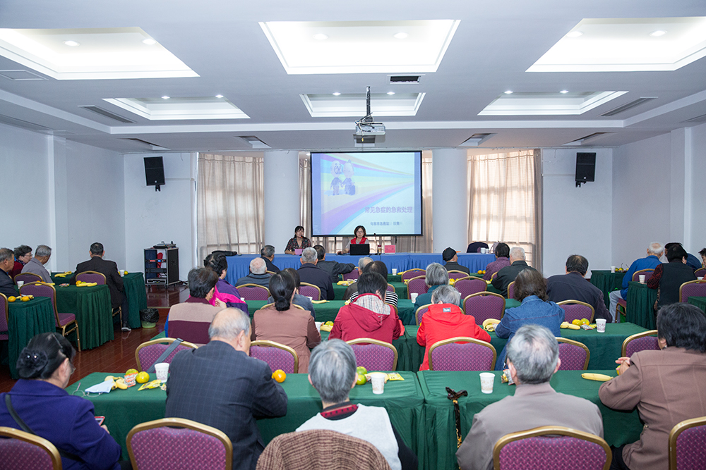 句容市120急救中心钱隽副主任给老同志们做了题为“内科急症的家庭处置方法”的讲座,着重介绍了冠心病、脑卒中、晕厥、低血糖糖尿病和气道梗塞等老同志常见病、多发病的病因、识别方法和救治措施。